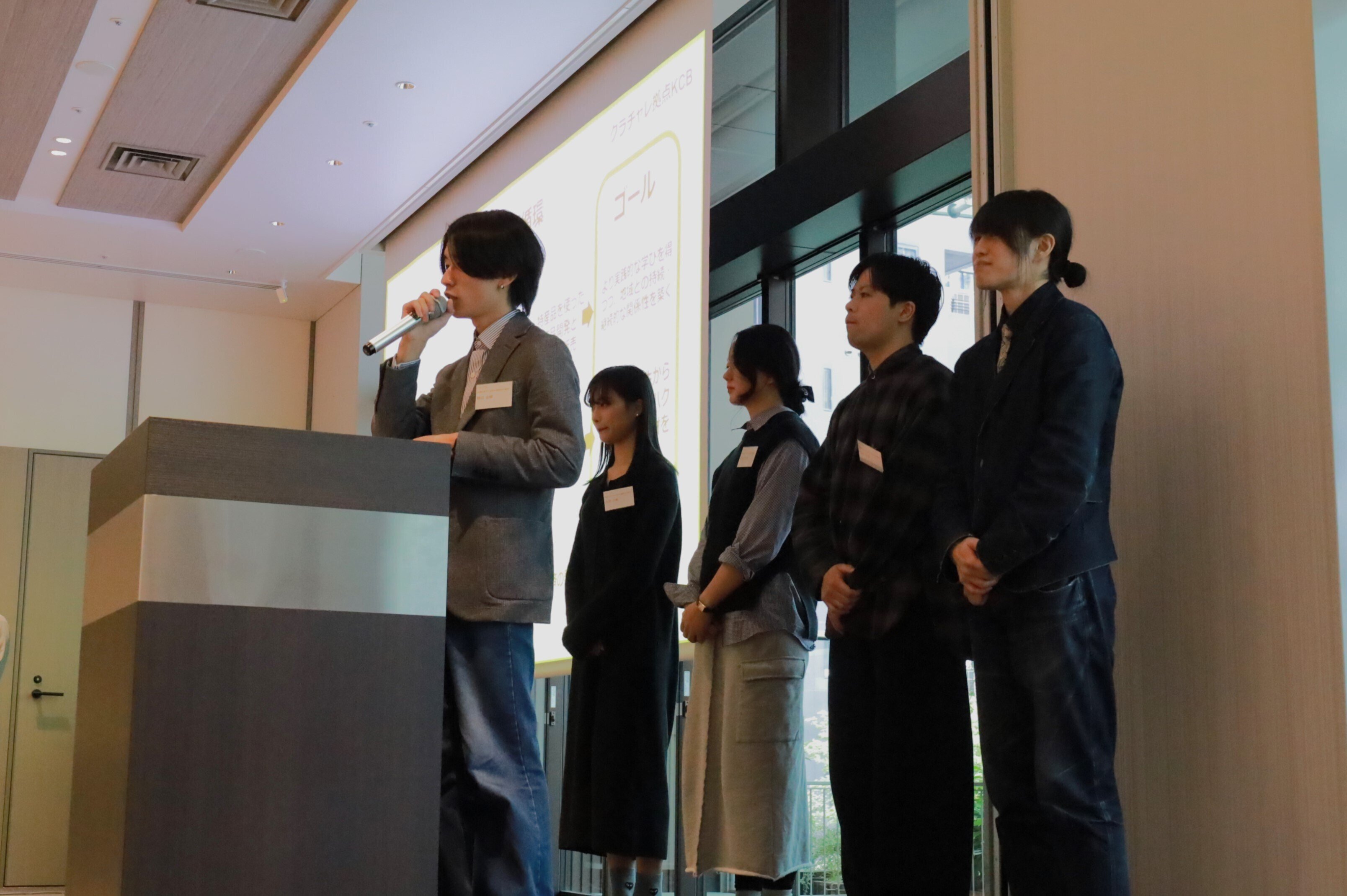 学生5グループが地域での実体験を基に考案した施策案を発表したのち質疑応答を行い、休憩・審査タイムを挟んで、審査員評価と参加者投票による優勝グループの発表・表彰が行われました。