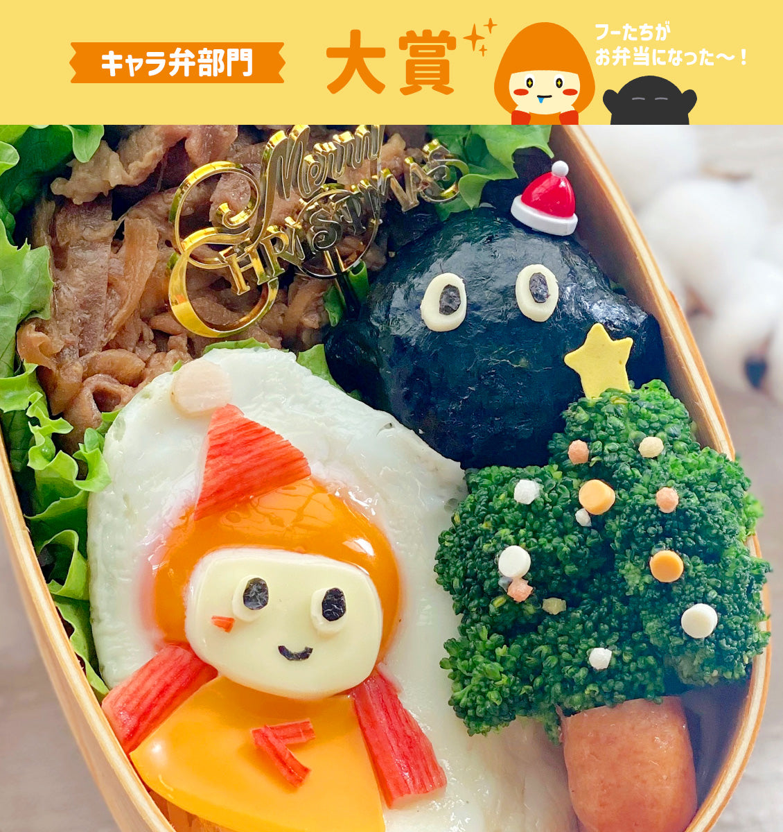 ・Kuradashi公式キャラクター「フー」または「ドロス」を模したおかずやごはんが1品以上入っていること