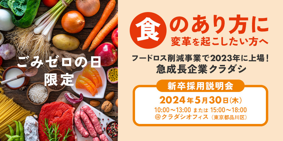 5月30日の「ごみゼロの日」に合わせて、本社オフィスで開催される説明会では、創業者や社員との対話を通じて、当社「クラダシ」についてご紹介します。