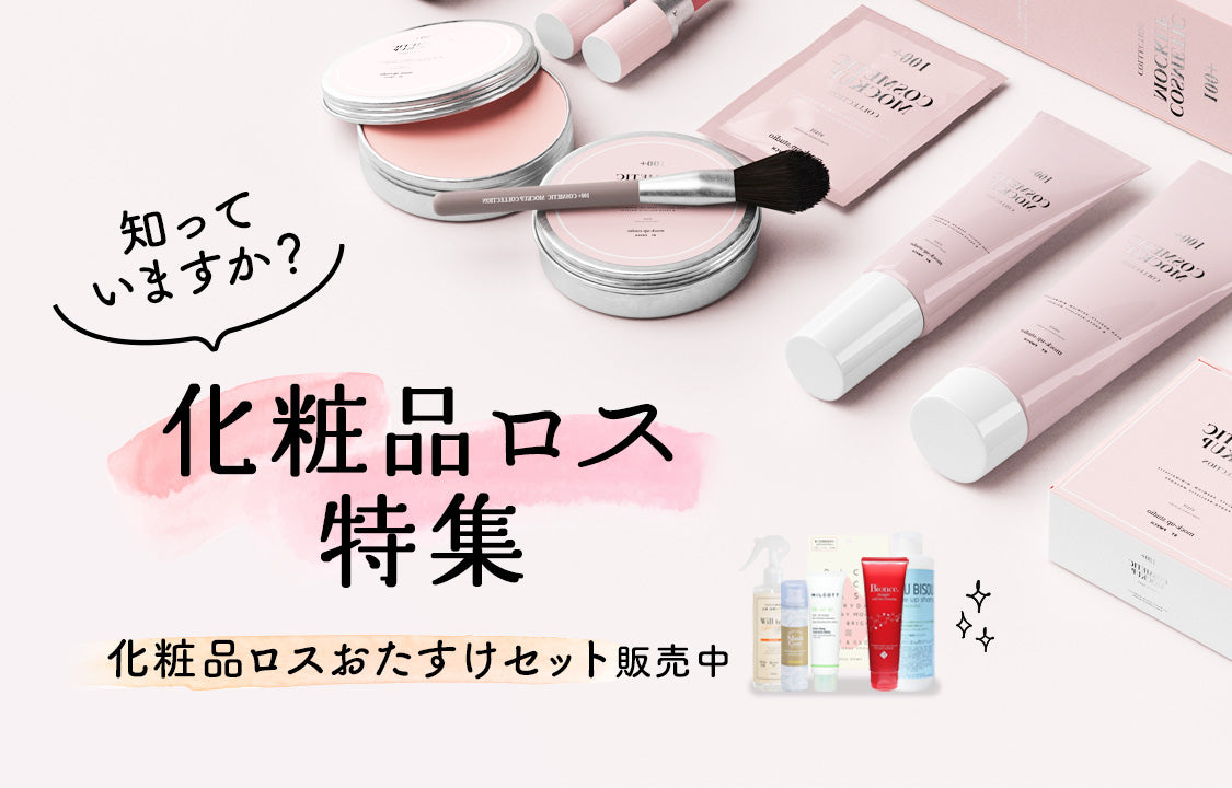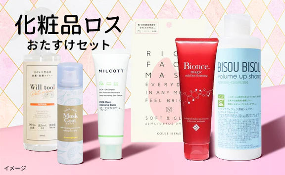 まだまだ使えるおトクな商品を詰め込んだ、「化粧品ロスおたすけセット」も販売中。