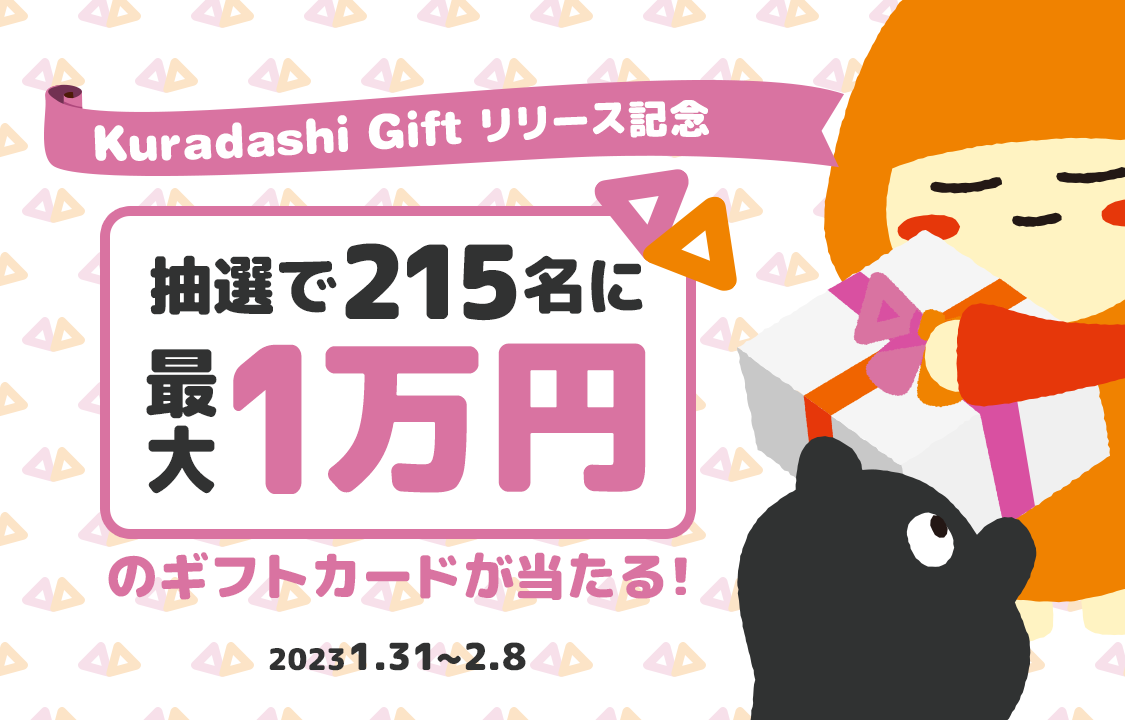 ・当選した方には、2023/2/19(日)までに、Kuradashiご登録メールアドレス宛てに、ギフト用URLを送付いたします。