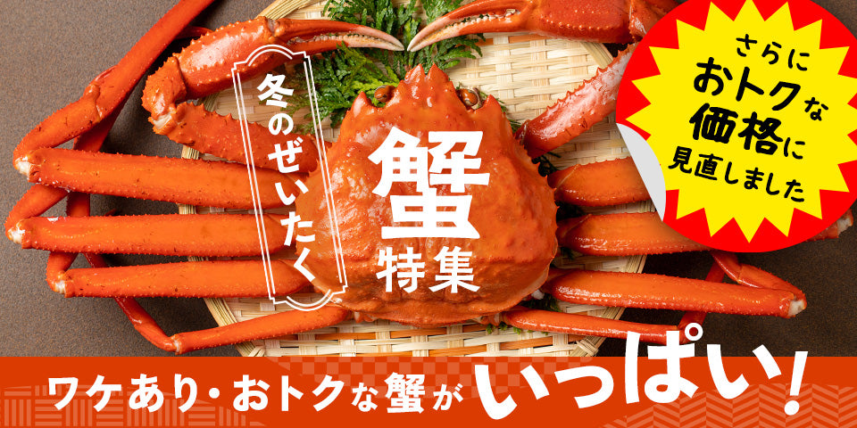 ちょっとワケありのおトクな蟹が今年も大集合!味に問題はないのに形が悪い、爪が外れてしまい見栄えが悪いなど通常価格では販売できない蟹たちをKuradashiバイヤーの確かな目で厳選してお届けします。