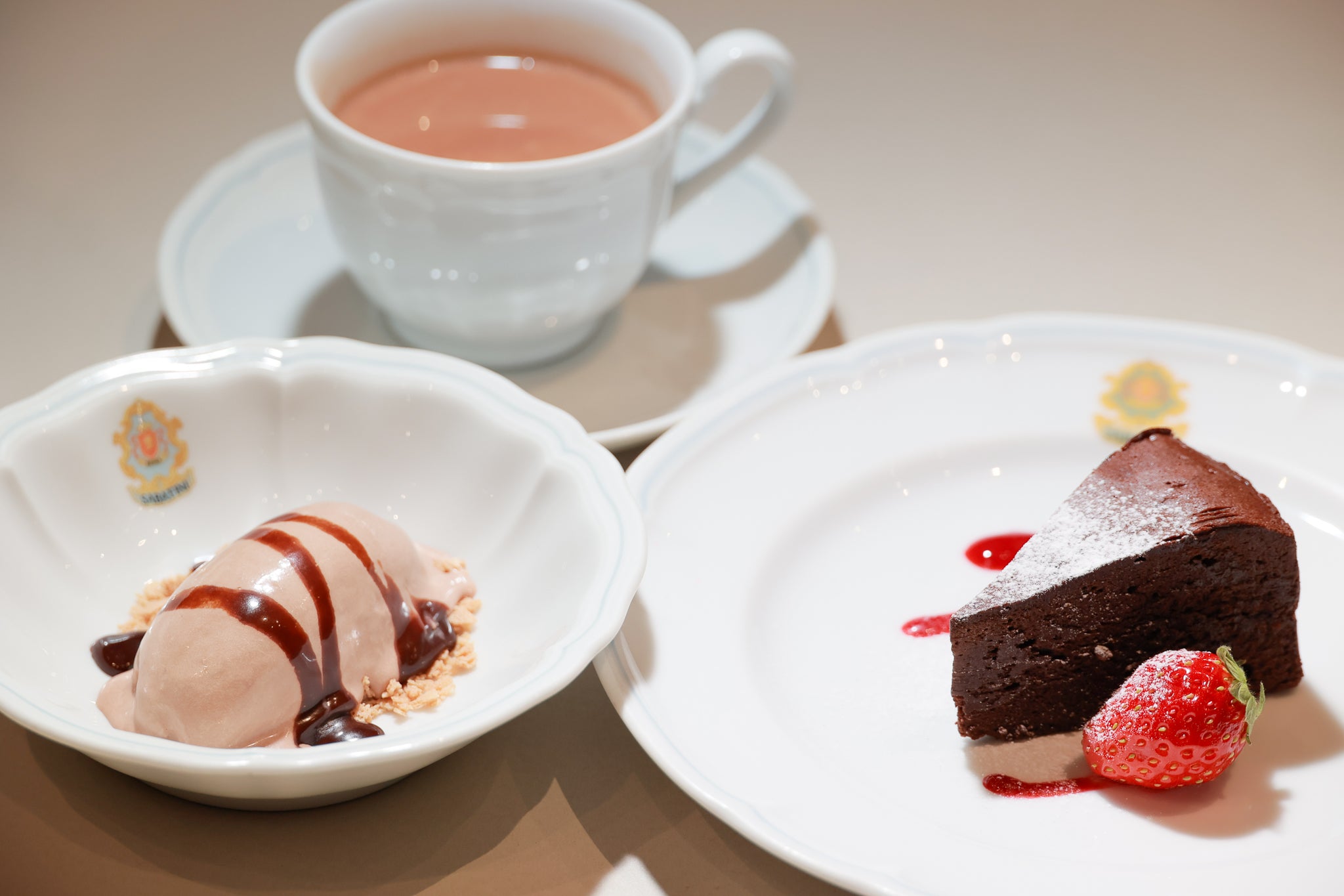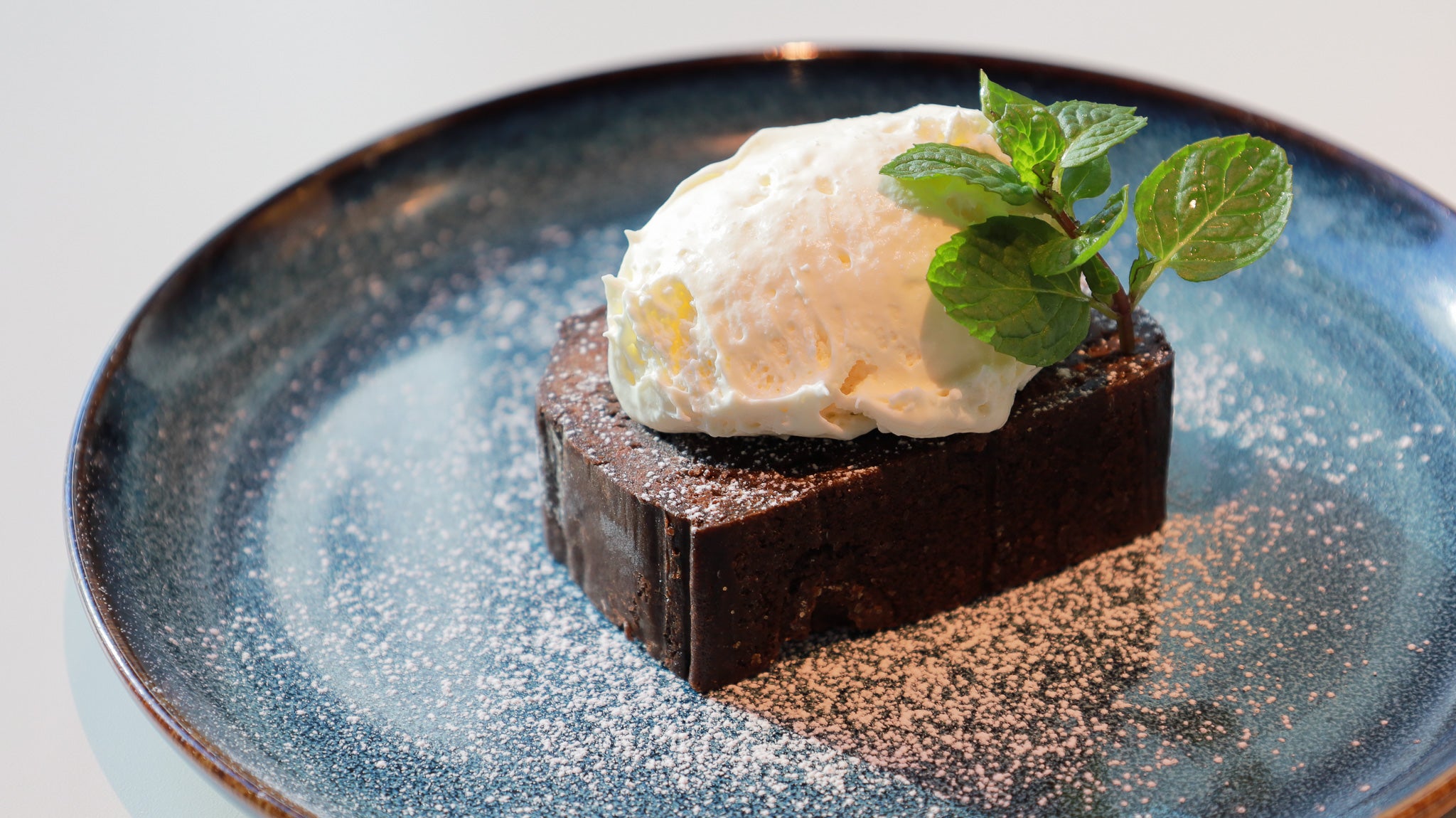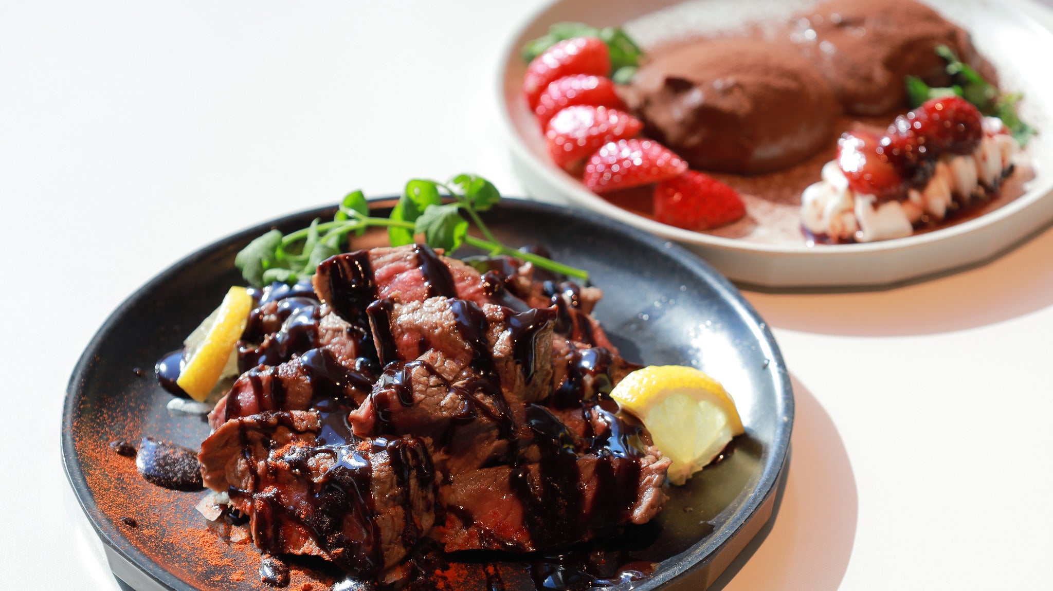 ・メニュー:チョコテリーヌと季節のフルーツ、ヤエパブのビフテキ!バレンタイン(チョコレートソース)