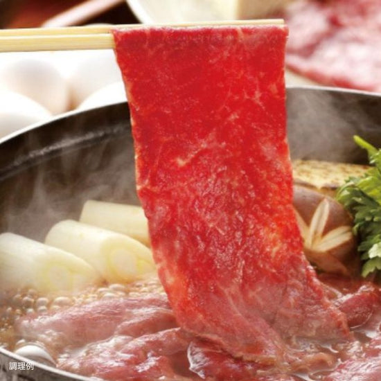| 商品説明 | きめの細かさと、柔らかい肉質の国産黒毛和牛のもも肉をすきやき用にスライスしました。お好みの野菜などを加えてご賞味ください。 |