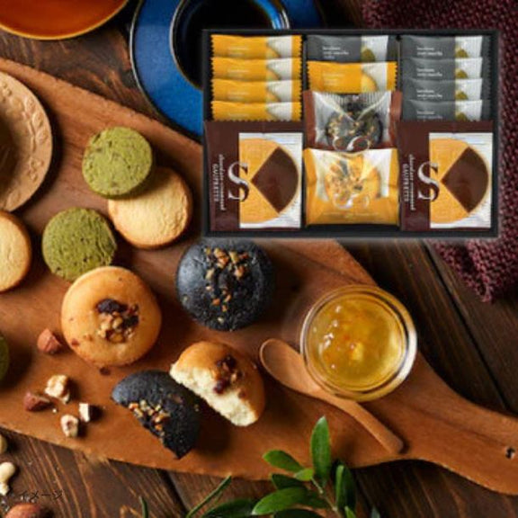| 内容量 | フィナンシェ(バニラ)×2、フィナンシェ(ショコラ)×2、ゴーフレット(チョコ)×4、クッキー(チーズ)×10、クッキー(抹茶)×10 / 箱 ※3箱セットにてお届けします |