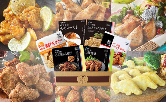 | 内容量 | 骨付きフライドチキン:400g、モモロースト:360g(4本)、山賊焼き:450g、バジルのフライドチキン:450g、どぶ漬から揚げレンジ280g、恐竜チキンナゲット500g ※ 各2ずつお届けいたします。 |