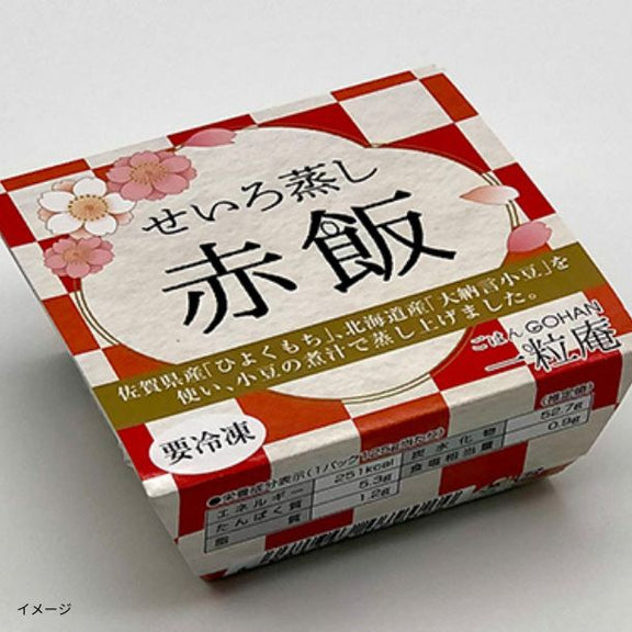 もち米(佐賀県産「ヒヨクモチ」)、大納言小豆(北海道産)、「一の塩」(唐津産)を素材とし、小豆の煮汁をかけながら蒸しあげた昔ながらの「赤飯おこわ」です。