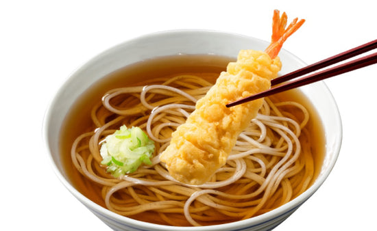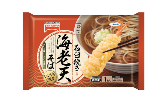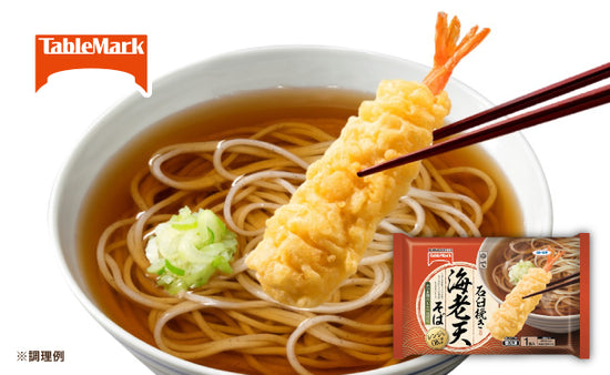風味豊かな石臼挽きそばに、プリッとおいしい海老天をのせました。熱々の海老天そばを、ご家庭で簡単にお召し上がりください。