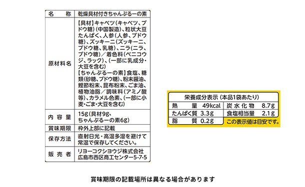 | 販売者の名称及び住所 | 株式会社 永谷園 東京都港区西新橋2丁目36番1号 |