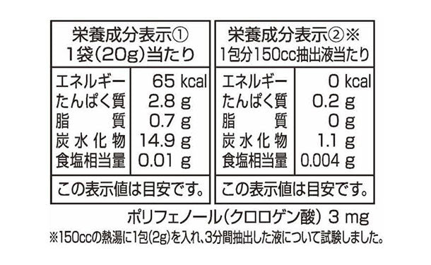 | 栄養成分 | 4粒(1g)当たりエネルギー:3.76kcal、たんぱく質:0.73g、脂質:0.03g、炭水化物:0.14g、食塩相当量:0.04g |