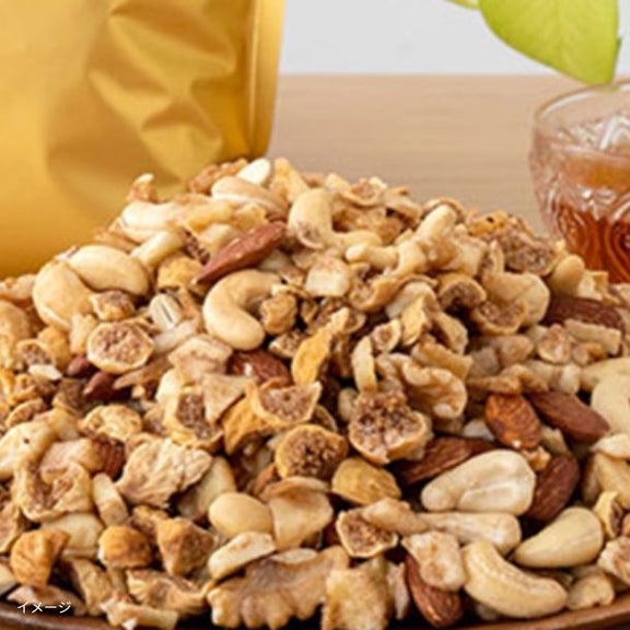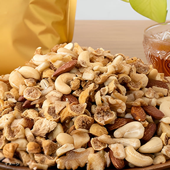 | 原材料名 | イチジク(イラン)、くるみ、スクエアバナナチップス(バナナ、ココナッツオイル、砂糖)、アーモンド、カシューナッツ ※本品製造工場では小麦、そば、卵、乳成分、落花生、えび、かにを含む製品を製造しております。 |