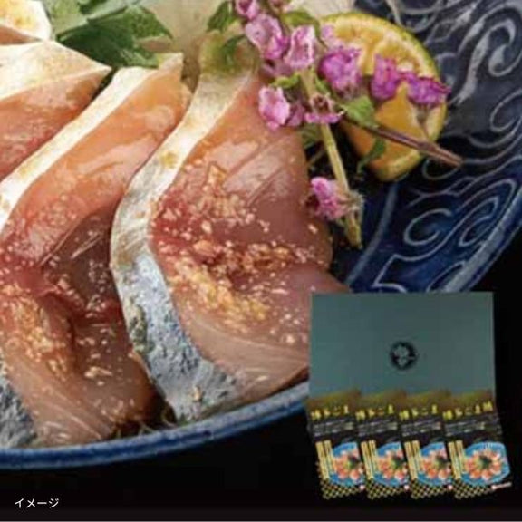 | 原材料名 | 真鯖(玄界灘産)、しょうゆ(大豆・小麦を含む)、料理酒、本みりん、ごま、砂糖/アルコール、カラメル色素、調味料(アミノ酸等)、保存料(パラオキシ安息香酸)、甘味料(ステビア)、酸味料 |