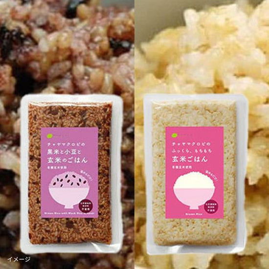| 原材料名 | 玄米ごはんプレーン:有機玄米(国産)、食塩 国産黒米と小豆と玄米のごはん:有機玄米(国産)、黒米、小豆、食塩 |