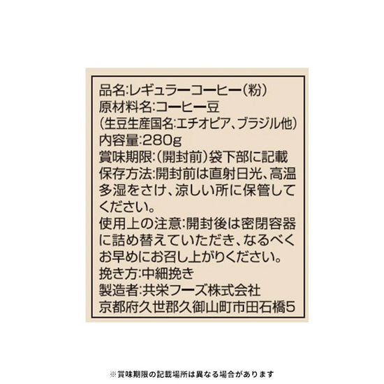 | 原材料名 | コーヒー豆(生豆生産国名:エチオピア、ブラジル他) |