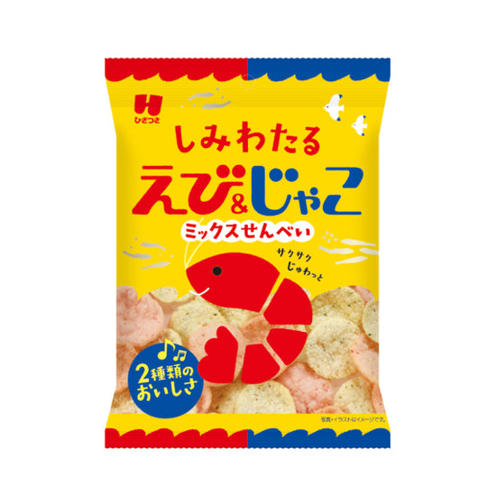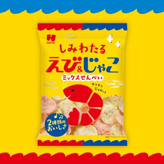 小えびと白えびを練り込んだ香り豊かなえびせんと、じゃこと白ごま、青さを練り込んだ風味豊かなじゃこせんをどちらも楽しめるミックスパックです。