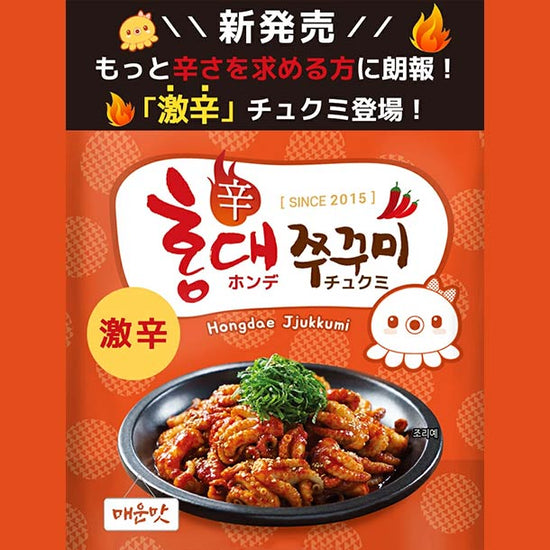 | 原材料名 | イイダコ、コチュジャン、砂糖、にんにく、唐辛子粉、香味油、黒こしょう、牛肉だし、ごま、/調味料(アミノ酸等)、酒精、香料、pH調整剤、カラメル色素、(一部に小麦・牛肉・ごま・大豆・鶏肉を含む) ※本品製造工場ではえび・かに・そば・卵・落花生・もも・くるみ・いかを含む製品を製造しております。 |