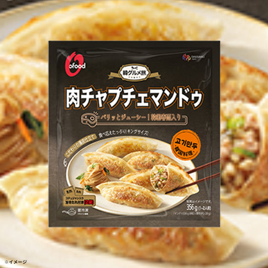 | 調理方法 | 【フライパンの場合】 フライパンに油を大さじ1杯入れ、凍ったままのマンドゥを並べます。フタをせず、1分間過熱します。水を約50ccマンドゥにかからないように入れて、フタをして約5分間蒸し焼きにします。フタをあけ、水分が飛んで焼き目がつくまで熱したら完成です。 【蒸し調理の場合】 蒸し器に水を適量入れて加熱をします。凍ったままのマンドゥを蒸し器に入れて並べフタをして約8分間加熱したら完成です。 |