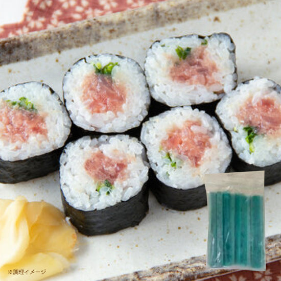 そのまま巻きずしの具材としてご使用できます。冷凍のまま酢飯に巻いて太巻きずしに。