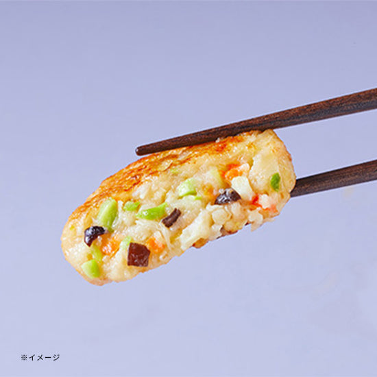 | 原材料名 | 野菜(水煮大根(大根(中国産))、たまねぎ、キャベツ、水くわい、にんじん、えだまめ)、パン粉、粉末状大豆たん白、きくらげ、植物油脂(なたね油、ごま油)、砂糖、醸造調味料、しょうゆ、ほたてエキス、食塩、魚介エキス、香味食用油、揚げ油(なたね油)/加工でん粉、(一部に小麦・乳成分・ごま・大豆を含む)