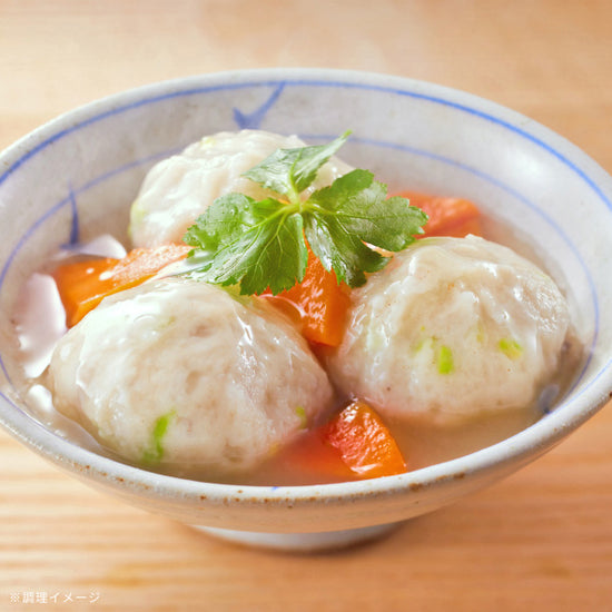 原材料名 野菜(さといも(ベトナム産又は中国産(5%未満))、えだまめ)、水煮れんこん、乾燥マッシュポテト、粉末状大豆たん白、魚肉すり身(たら、砂糖)、植物油脂、しいたけ、砂糖、食塩、エビエキス調味料、ぶどう糖、本みりん、魚エキス調味料、しょうゆ、野菜エキス/加工でん粉、トレハロース、増粘剤(加工でん粉、増粘多糖類)、安定剤(メチルセルロース、アルギン酸エステル)、調味料(アミノ酸等)、銀あん(にんじん、白だし、かつお風味だし/増粘剤(加工でん粉)、調味料(アミノ酸等))、(一部にえび・小麦・さば・大豆を含む)