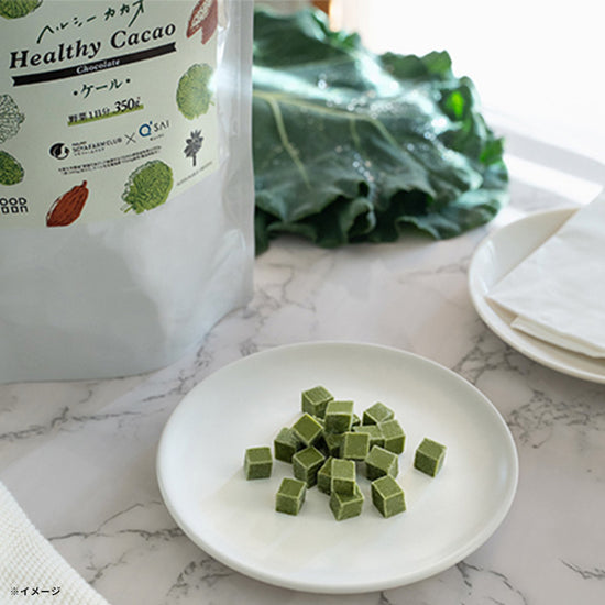 | 原材料名 | 砂糖(国内製造)、植物油脂、ココアバター、澱粉分解物、ケール粉末、豆乳粉末/乳化剤、(一部に乳成分・大豆を含む) |