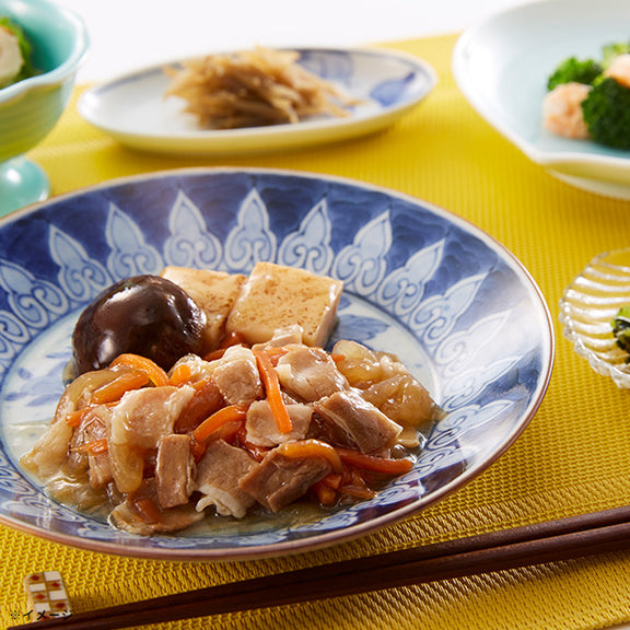 | 原材料名 | ブロッコリー(中国)、葉大根、焼き豆腐、白菜、玉ねぎ、豚肉、人参、醤油、椎茸、牛蒡、植物油、砂糖、えび、発酵調味料、竹輪、ちりめんじゃこ、味噌、生姜、風味調味料、ごま、食塩、にんにく、チキンパウダー/糊料(加工でん粉)、加工でん粉、調味料(アミノ酸等)、凝固剤、甘味料(甘草)、酸化防止剤(ローズマリー抽出物)、酸味料、着色料(カラメル)、キシロース、香料、(一部に小麦・卵・乳成分・えび・ごま・大豆・鶏肉・豚肉を含む)
