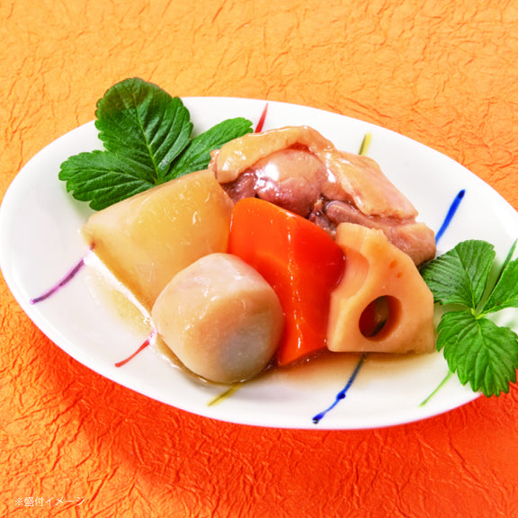 | 原材料名 | 鶏肉(ブラジル)、大根、里芋、人参、れんこん水煮、煮物調味液(醤油、ワインタイプ醸造調味料、砂糖、その他)/トレハロース、増粘多糖類、調味料(アミノ酸等)、pH調整剤、カラメル色素、酸化防止剤(ビタミンC)、(一部に小麦・大豆・鶏肉を含む) |