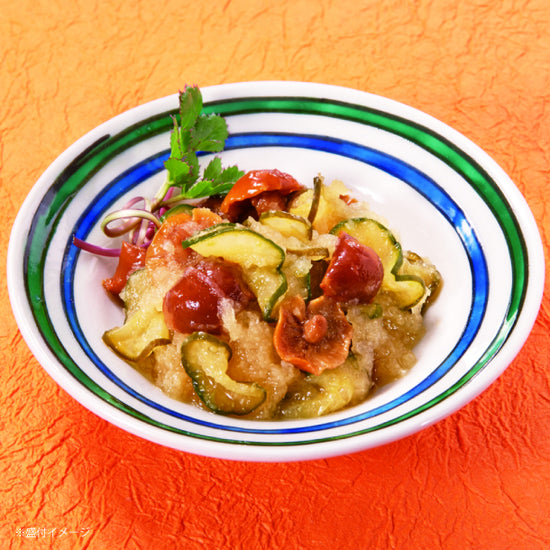 | 原材料名 | なめこ水煮(国内製造)、大根おろし、胡瓜、味付けぽん酢、調味酢(ぶどう糖果糖液糖、醸造酢、その他)/調味料(アミノ酸等)、酸味料、香料、(一部に小麦・大豆を含む) |