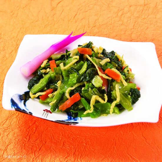 | 原材料名 | チンゲン菜(中国)、錦糸卵、人参、和え物調味液(たん白加水分解物、米発酵調味料、醤油、その他)/加工でん粉、トレハロース、調味料(アミノ酸等)、カロチン色素、増粘多糖類、(一部に小麦・大豆・卵を含む) |