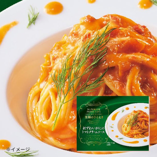 紅ずわいがにのほぐし身を使ったトマトクリームソース白ワインで、かにの香りと旨みを引き立てたソースです。