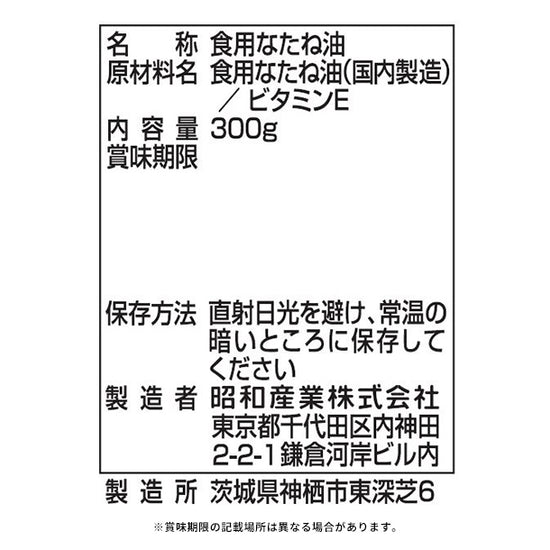 | 原材料名 | 食用なたね油(国内製造)/ビタミンE |