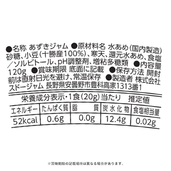原材料名 水あめ(国内製造)、砂糖、小豆(十勝産100%)、寒天、還元水あめ、食塩/ソルビトール、pH調整剤、増粘多糖類