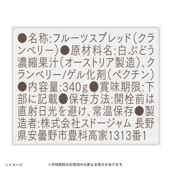 | 原材料名 | 白ぶどう濃縮果汁(オーストリア製造)、クランベリー/ゲル化剤(ペクチン) ※本品製造工場では乳成分を含む製品を製造しております。 |