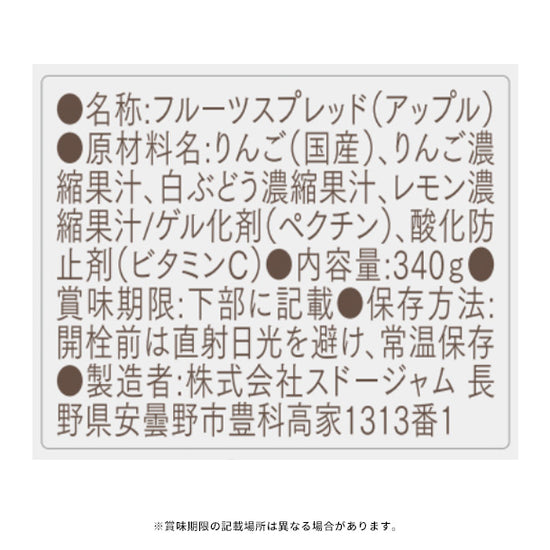 | 原材料名 | りんご(国産)、りんご濃縮果汁、白ぶどう濃縮果汁、レモン濃縮果汁/ゲル化剤(ペクチン)、酸化防止剤(ビタミンC) ※本品製造工場では乳成分を含む製品を製造しております。 |