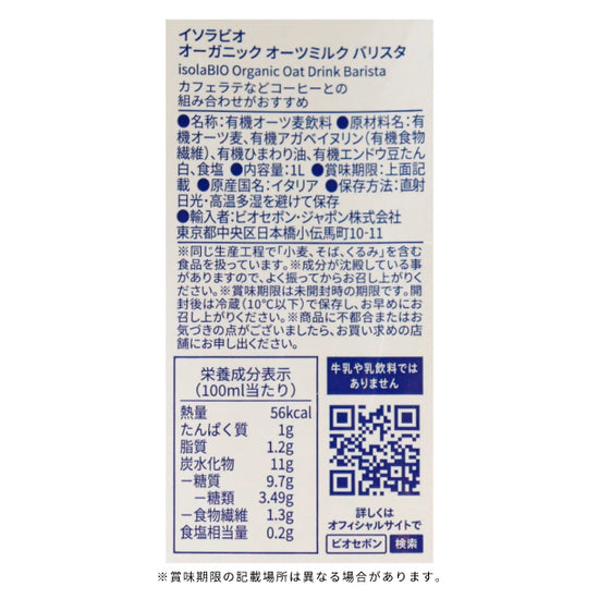| 原材料名 | 有機オーツ麦、有機アガベイヌリン(有機食物繊維)、有機ひまわり油、有機エンドウ豆たん白、食塩 ※同じ生産工程で「小麦、そば、くるみ」を含む食品を扱っています。 |