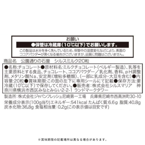 | 原材料名 | ミルクチョコレート(ベルギー製造)、乳等を主要原料とする食品、チョコレート、ココアパウダー/乳化剤、香料、pH調整剤、メタリン酸Na、安定剤(増粘多糖類)、(一部に乳成分・大豆を含む) |