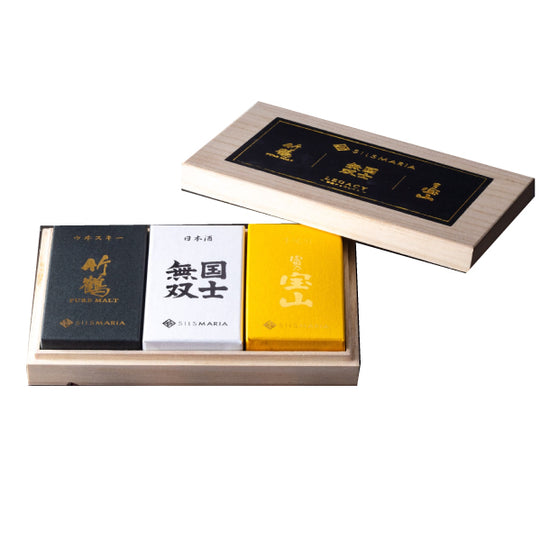 | 注意事項 | ●アルコール分が含まれておりますのでお車や自転車を運転される方や妊娠中や授乳期の方はご注意ください。 竹鶴:3.0%、 国士無双:1.6%、 富乃宝山:2.5% ●この製品は水分を多く含んでいるため、保管中の温度変化により表面の粉が溶ける場合がございますが、品質には問題ございません。 ●開封後は製品が乾燥し表面がザラつく場合がございますが出来るだけ密封しお早めにお召し上がりください。 |