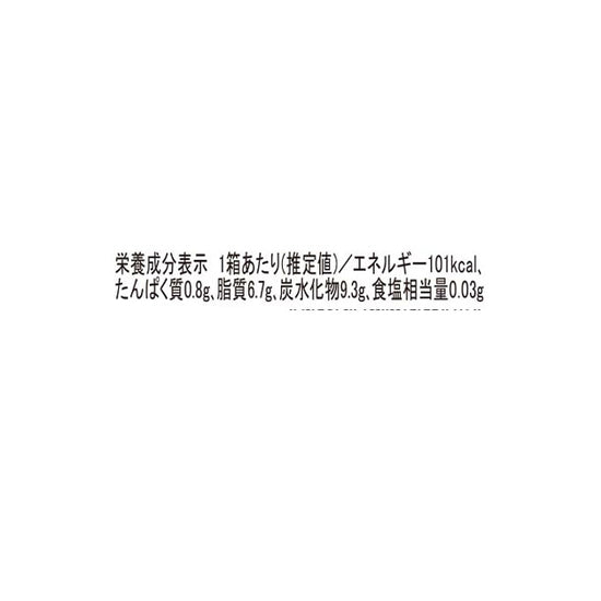 | 栄養成分 | (1箱当たり)エネルギー:101kcal、たんぱく質:0.8g、脂質:6.7g、炭水化物:9.3g、食塩相当量:0.03g |