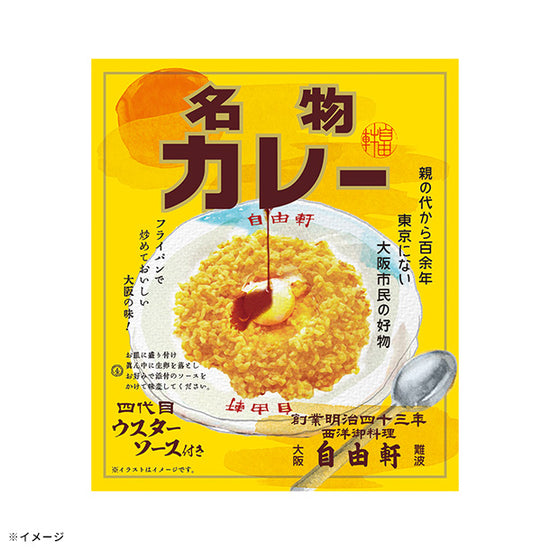 明治43年創業、大阪で一番古い洋食店として有名な自由軒のカレー。ペーストされたルーをフライパンに入れ、白いご飯と混ぜて食べるのが特徴的です。