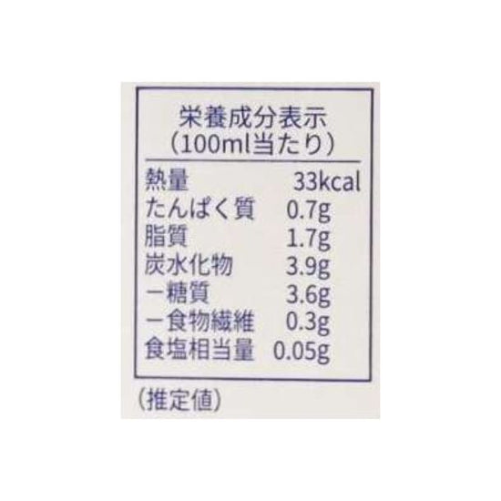 栄養成分 (100mlあたり)エネルギー:33cal、たんぱく質:0.7g、脂質:1.7g、炭水化物:3.9g、食塩相当量:0.05g