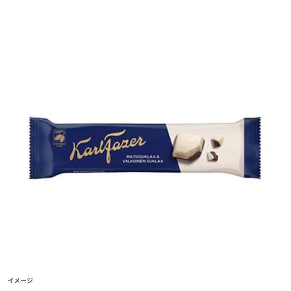 生乳と希少なカカオを使用したこだわりのミルクチョコレートと、ホワイトチョコレートが二層になった商品。フィンランドカラーのパッケージがとても目を引きます。