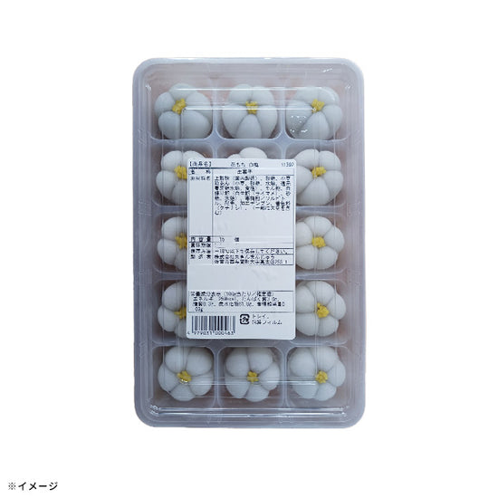 | 原材料名 | 上新粉(国内製造)、砂糖、小豆粒あん(小豆、砂糖、水飴、還元麦芽糖水飴、食塩)、でん粉、白練り餡(白生餡(ライマメ)、砂糖、水飴)、寒梅粉/ソルビトール、酵素、加工デンプン、着色料(クチナシ)、(一部に大豆を含む) |
