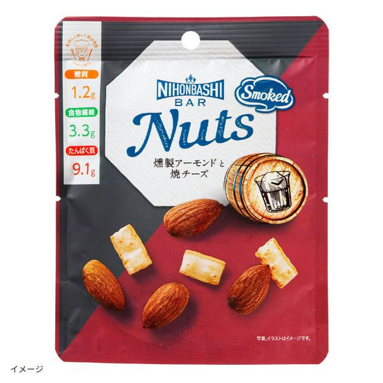 国産桜チップでアーモンドをじっくりと強めに燻製しました。スモークの香りと口に広がる香ばしさをお楽しみいただけます。焼チーズ入りで、ウィスキーとよく合います。