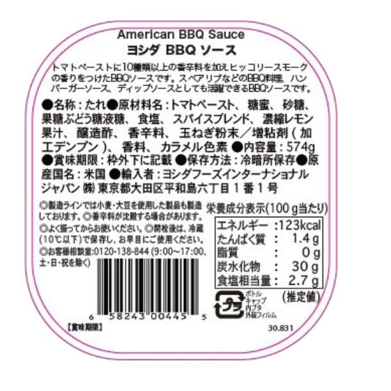 スペアリブなどのBBQ料理、ハンバーガーソース、ディップソースとしても活躍できるBBQソースです。574gのサイズでたっぷりご使用頂けます。
