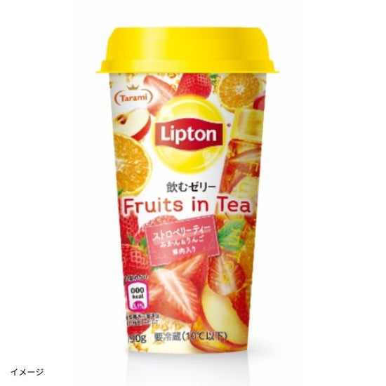 みかん・りんご果肉と共にストロベリーティーの豊かな味わいが楽しめる、飲むフルーツインティーゼリーリプトンの「Fruits in Tea」が、たらみの飲むゼリーになりました。華やかな甘さあるストロベリーティーに、みかん・りんご果肉入りで、フルーティーな美味しさが楽しめます。くちどけの良いみずみずしいジュレに、みかん・りんご果肉の食感がアクセント。小腹満たしにぴったりな190gです。紅茶の84%にリプトンブランドを使用しています。