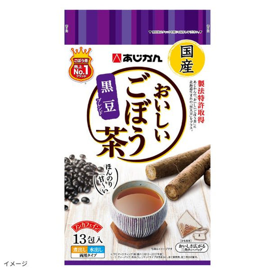 「特許製法取得」のあじかんのおいしい「国産焙煎ごぼう茶」との相性も抜群。国産焙煎ごぼう茶」の香ばしさに、より一層の甘みが加わり美味しくお召し上がりいただけます。