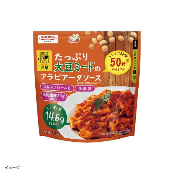 たっぷりの大豆ミートと、トマトの風味や唐辛子の辛味が味わえる、あっさりとしたアラビアータソースです。