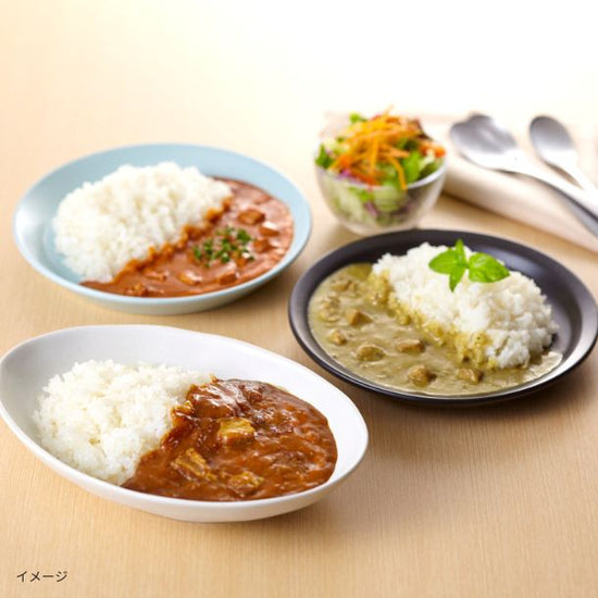 | 内容量 | ビーフカレー:180g×5食、バターチキンカレー:180g×5食、グリーンカレー:180g×5食/セット |