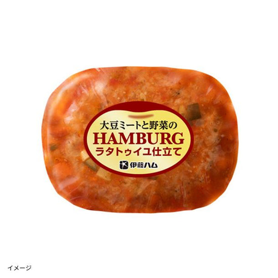 野菜入りハンバーグにラタトゥイユソースを合わせましたラタトゥイユソースには7種の野菜が入っており、食べやすいおいしさです。
