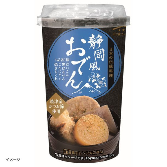 焼津産かつお節を使用した濃いめのつゆがしっかり染み込んだ具材に、静岡おでんならではの削り粉を振りかけてお召し上がりください。